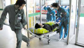 “急救醫生變身‘最美擔架哥’,要給他120個贊!”昨日,一名醫生在泥地里搶救、抬送傷員的照...